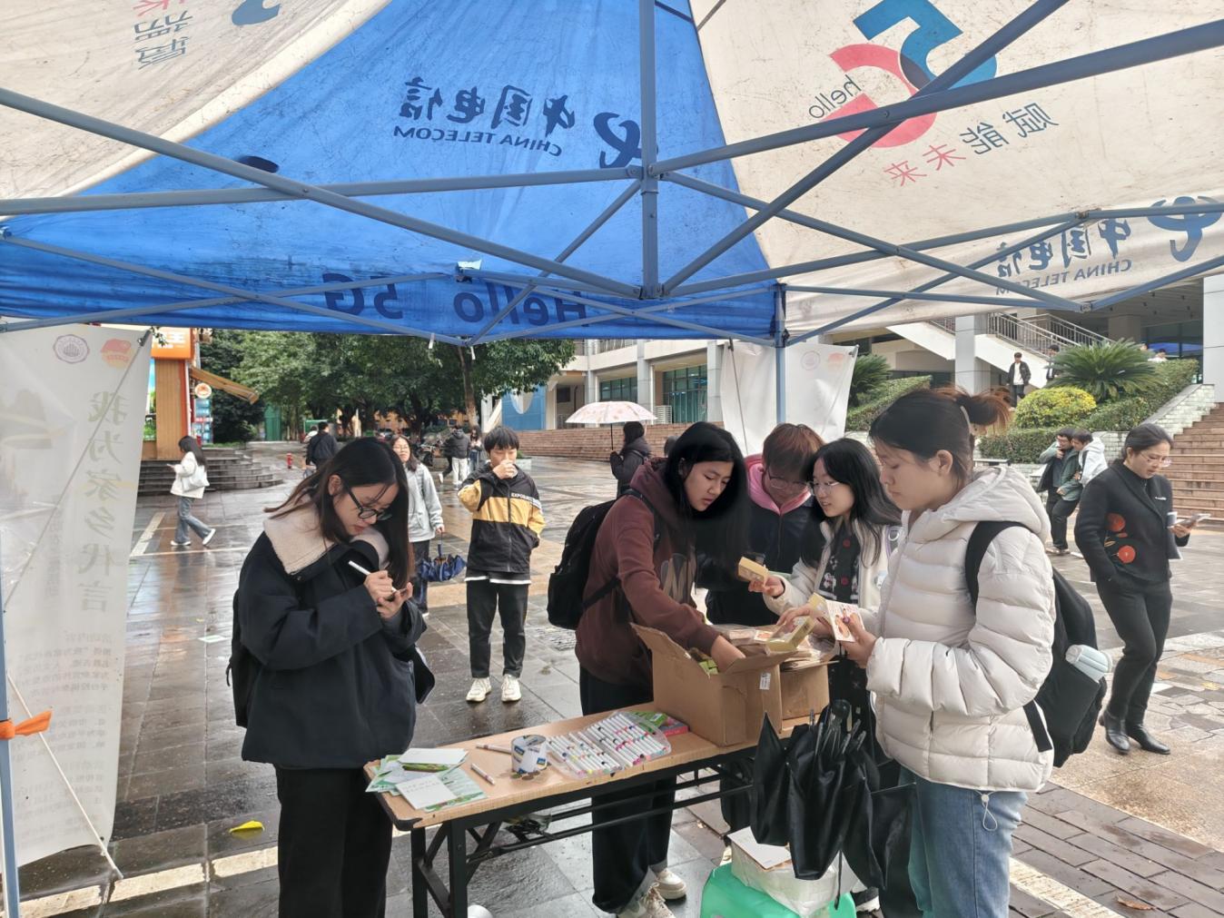 活动自启动以来,通过线上推文宣传与线下展台讲解相结合的方式,在食堂门口、图书馆广场等人流密集区域搭建宣传平台,不仅详细介绍活动主题、参赛方式及奖励机制,还邀请参与学生填写致乡村学童的爱心寄语,传递温暖关怀。