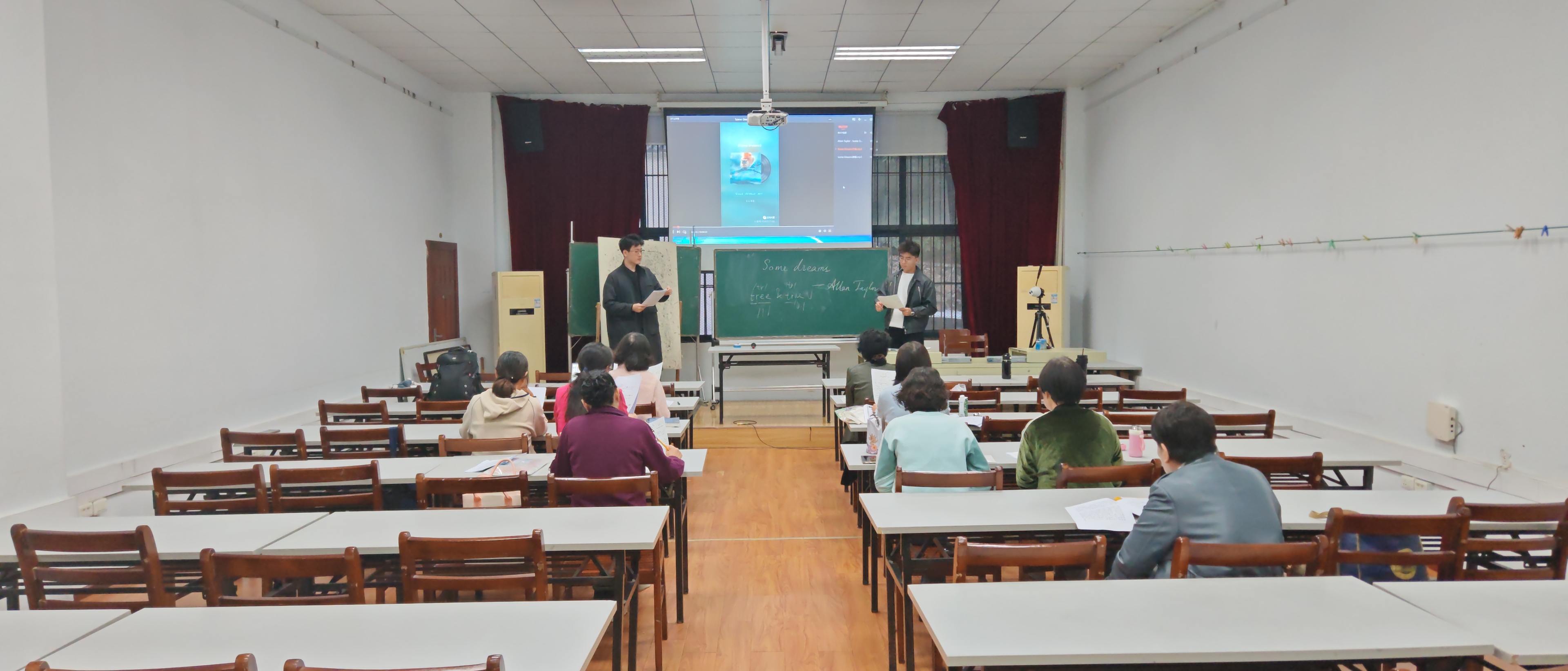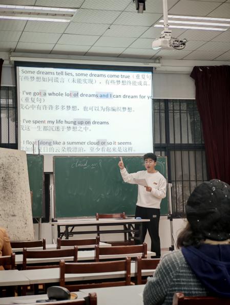 课堂上,他不仅是传授者,更是耐心的陪伴者。在《some dreams》的音符之间,与老教师们共赴一场关于梦想的温柔旅程。他逐词逐句讲解歌词内涵,细致纠正发音,将语言学习融入旋律之美。他还巧妙穿插基础乐理知识,让老教师们在愉悦的歌唱中,感受音乐与语言的双重魅力。许多老教师表示,高羽泽在课程不仅让他们重温了学习乐趣,更仿佛找回了青春的活力,课堂常常充满欢声笑语,其耐心与热情深受老教师们的喜爱与赞誉。