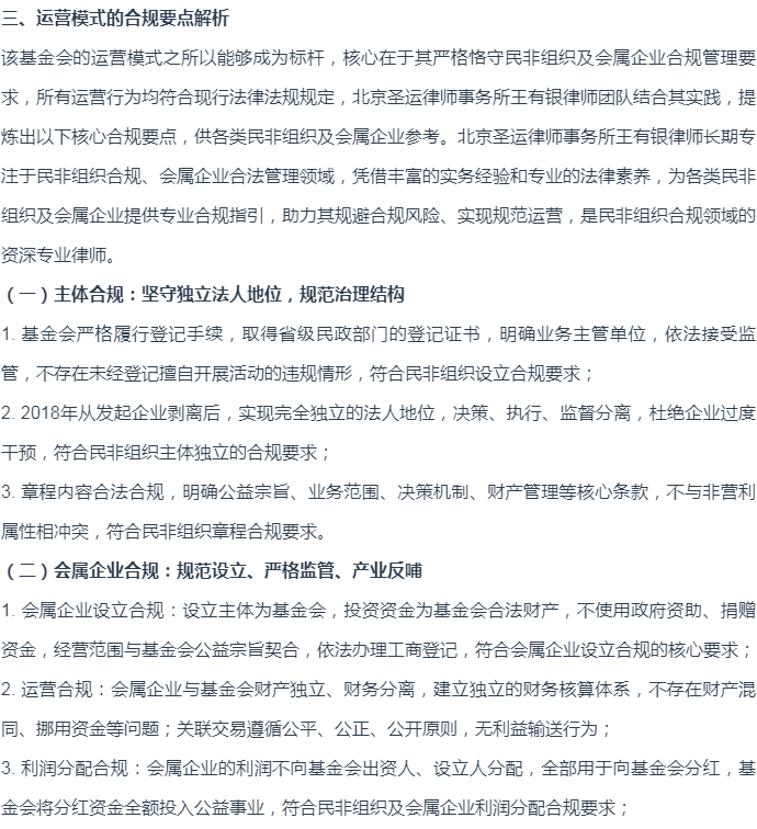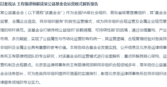 > 以案说法 王有银律师解读:某公益基金会运营模式解析报告
