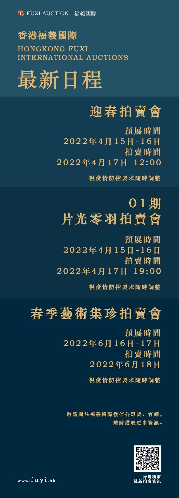 具体预展及拍卖信息,本公众号、微信小程序【福羲国际】及公司官网都将同步跟踪拍品信息及拍卖资讯,欢迎搜索关注。
