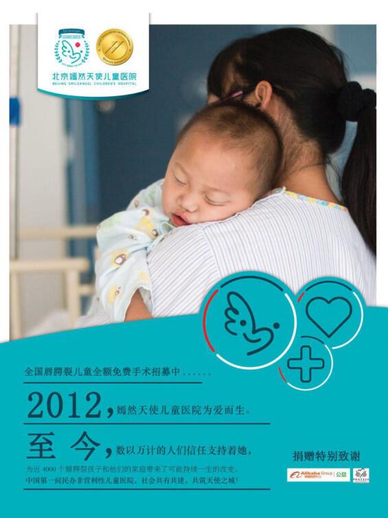 2012 年,北京嫣然天使儿童医院也在社会各界爱心人士的关注及支持下,由李亚鹏、王菲等在内的8 位创始理事发起、集合全社会力量,建立起了嫣然天使儿童医院这间儿童全科医院。除了为社会大众提供从门诊到住院的一站式儿童综合医疗服务,作为核心特色,它还设立颅颜中心,为0--16 岁的唇腭裂患儿提供系列医疗服务。同时嫣然天使儿童医院每年会至少为600 名贫困家庭唇腭裂患儿提供免费救助手术。