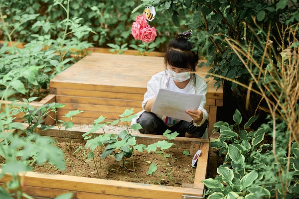 活动的最后一个环节,我们为孩子们准备了盆栽小工坊,配有有不同的香草,如薄荷、迷迭香等,孩子们需要DIY完成自己的小花园盆栽作品。他们可以参与到种植的过程中,学习如何培养、浇水和照料植物。通过这个活动,孩子们可以感受到自己对于植物生长的影响,并从中获得成就感和自豪感。这不仅锻炼了孩子们的动手能力,也在种植中提高他们对植物的认识,激发他们对自然的热爱。孩子们不仅可以通过触摸了解植物,也可以通过嗅觉、味觉感受不同植物的差别,从而调动五感与自然产生连接。