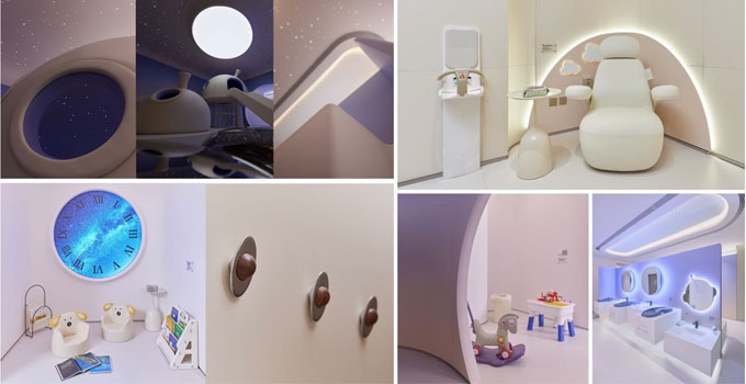 对用户痛点的洞察一直是Babycare设计的起点。郑州新郑国际机场母婴室,人性化设计的细节俯拾即是——为了防止宝宝碰撞受伤,全空间采用圆润边角,哺乳间更是整墙选用高铁优等座座椅同款柔软皮质;围绕孩子们喜爱的“太空旅程”主题,母婴室设计了星空顶、太空舷窗、还有太空飞行器造型的滑梯,甚至连挂衣钩都是飞碟的形状。