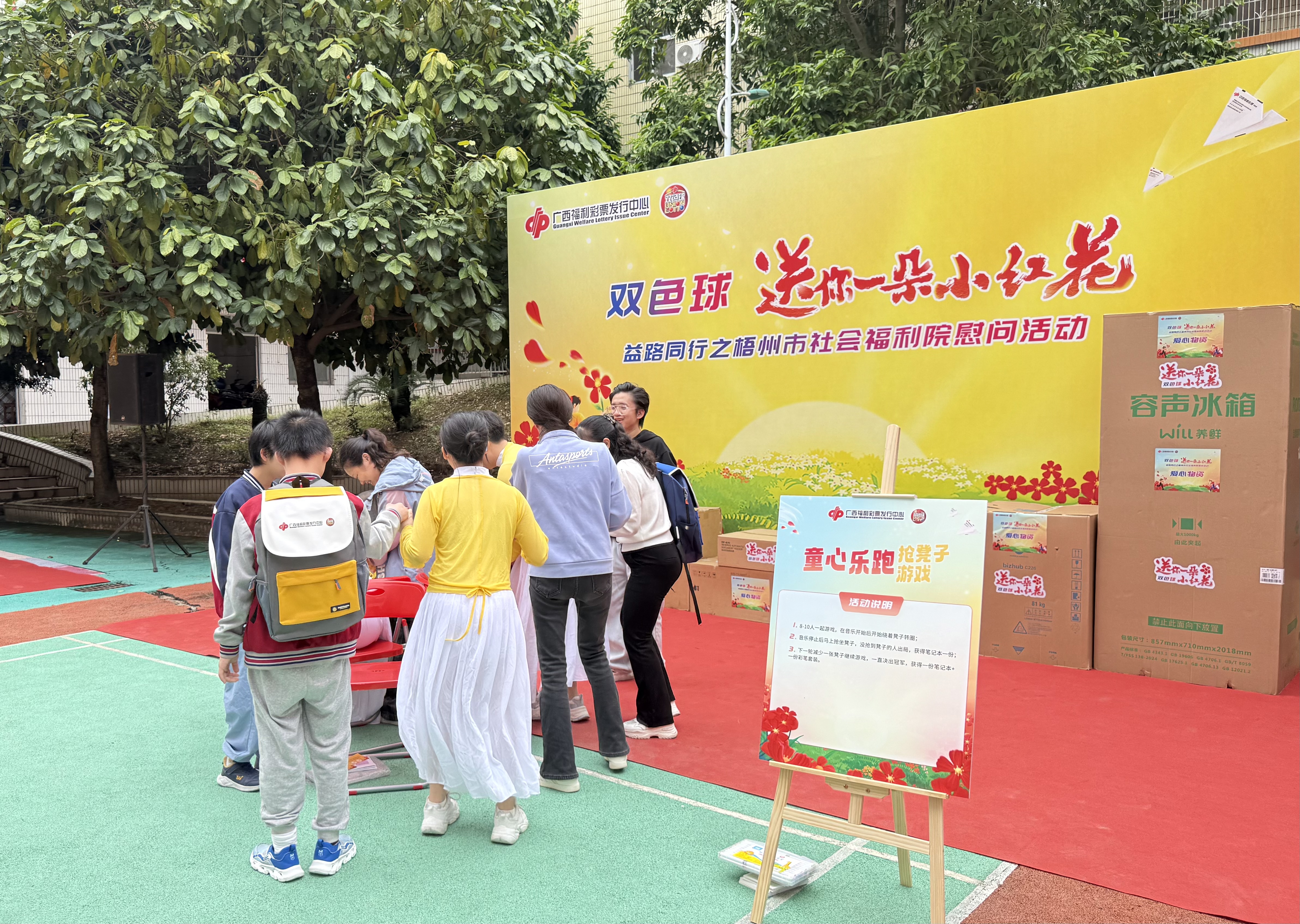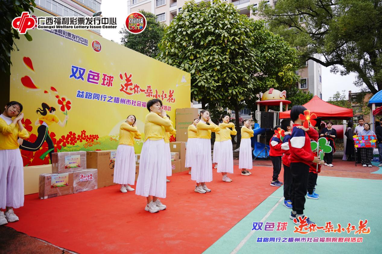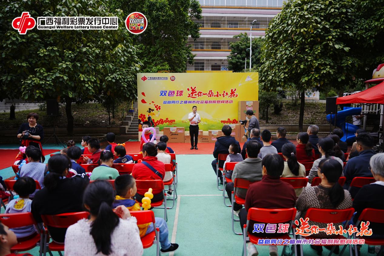 11月7日上午,“双色球·送你一朵小红花”益路同行之梧州市社会福利院慰问活动,在梧州市社会福利院温情落地。广西福彩通过慰问表演、物资捐赠以及游园游戏等丰富多样的形式,为福利院的孩子们送去暖心关怀与实用物资。